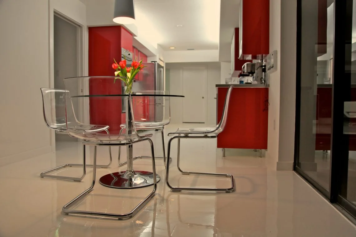 A uniform solid color finish hides patchiness and gives the room a cleaner feel. Consistent color helps smaller spaces look wider and more organized. The smooth surface also supports easier movement, improves visibility, and makes the area safer to navigate. Because the coating resists stains and fading, the floor keeps its crisp look with minimal effort and simple cleaning.